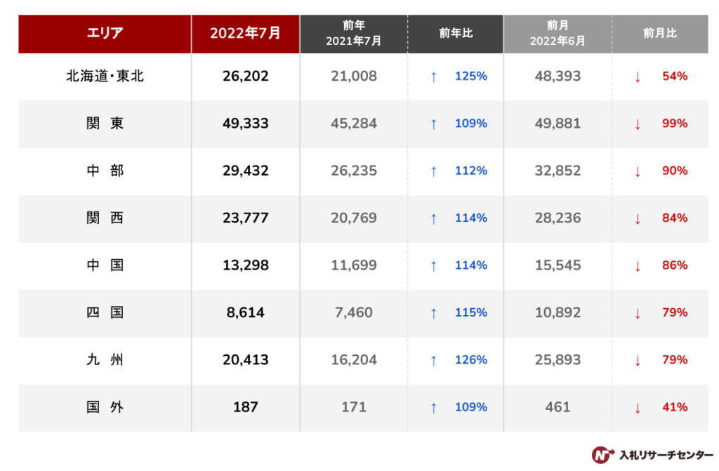調査名:入札リサーチセンターマンスリーレポート(2022年7月度)