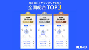 ※本プレスリリースおよびランキングの調査データを引用・掲載される際は、「自治体ドックランキング2026」および、調査元(うるる)、出典URL(https://www.uluru.biz/news/20445 もしくは https://lp.govtechbridge.com/dx-ranking)を明記ください。